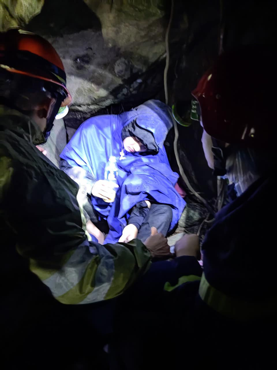 Lúc này, nạn nhân trong tình trạng đa chấn thương, người lả đi vì đói và rét. Cán bộ, chiến sĩ cứu nạn cuốn chăn ấm, tiếp nước và cho nạn nhân ăn mì tôm lấy lại sức.