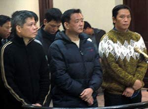 | Dũng kiều (ngoài cùng, bên phải) trong phiên tòa xét xử. |