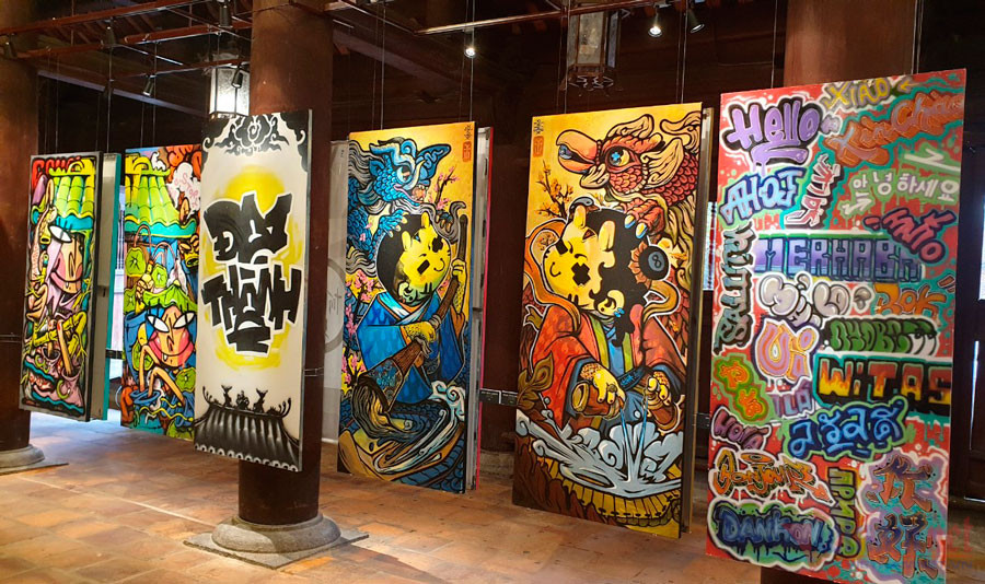 Trung tâm hoạt động Văn hoá Khoa học Văn Miếu - Quốc Tử Giám phối hợp với Viện Văn hóa Nghệ thuật quốc gia Việt Nam tổ chức khai mạc triển lãm "Đối thoại Thư pháp và Graffiti". Các tác giả đã mang đến triển lãm 39 tác phẩm của cả hai loại hình sáng tác, nội dung xoay quanh các chủ đề về đạo nghĩa thầy - trò; học tập, rèn luyện bản thân; sách và văn hóa đọc; Văn Miếu - Quốc Tử Giám; Việt Nam và các địa danh nổi tiếng của đất nước.Triển lãm "Đối thoại Thư pháp và Graffiti" là kết quả của một dự án sáng tác và trưng bày về Thư pháp kết hợp với Graffiti với mục đích góp phần từng bước hiện thực hóa ý tưởng đưa Văn Miếu - Quốc Tử Giám trở thành một không gian sáng tạo, một điểm đến quen thuộc của công chúng yêu di sản và văn hóa nghệ thuật. Đây là dịp để hai loại hình sáng tác này được đối thoại, đồng sáng tạo và đến gần hơn với công chúng, mang lại cho người xem những trải nghiệm và góc nhìn mới mẻ, tích cực, gần gũi đối với cả hai bộ môn. Graffiti là bộ môn nghệ thuật gắn liền với văn hóa đường phố ra đời vào khoảng những năm 1970. "Graffiti" là một từ bắt nguồn từ chữ “graphein” trong tiếng Hy Lạp – có nghĩa là viết. Sau này, trở thành từ “graffito” trong tiếng La tinh, có nghĩa là “hình vẽ trên tường”, tên gọi chung cho những hình ảnh hoặc chữ viết kiểu cách trên các bức tường ở các đường phố, khu phố và được vẽ bằng sơn, sơn xịt hoặc đánh dấu bằng thứ vật liệu bất kỳ lên những nơi có bề mặt phẳng, rộng. Thư pháp là nghệ thuật thể hiện chữ viết, một loại hình sáng tác có lịch sử lâu đời, đã được hình thành và phát triển tại khắp nơi trên thế giới, ngay cả ở các nước phương Tây chứ không chỉ trong phạm vi các quốc gia phương Đông. Tại phương Tây, thư pháp được biết tới dưới cái tên Calligraphy. Calligraphy là kết hợp hai từ Calli và Graphy. Calli có nguồn gốc từ Hy Lạp là Kalli, phát sinh từ Kallos có nghĩa là vẻ đẹp và từ Graphy có gốc Hy Lạp là Graphein, có nghĩa là viết chữ. Bên cạnh Calligraphy, cũng có một lối “chơi chữ nghệ thuật” khác được gọi là Graffiti.Từ bao đời nay, thư pháp luôn được biết đến như một thú chơi tao nhã của giới có học thức, giỏi ngôn ngữ và đam mê văn chương. Trong khi đó, hình ảnh những bức tường phủ đầy graffiti thường gợi lên trong tâm trí người ta hình ảnh những người trẻ “nổi loạn” thích “vẽ bậy”, khao khát được thể hiện và khẳng định mình. Triển lãm là cuộc đối thoại đầy thú vị của hai loại hình sáng tác tưởng chừng khó tìm được tiếng nói chung bởi những khác biệt trong thẩm mỹ, ngôn ngữ và chất liệu thể hiện. Cuộc đối thoại trải qua bốn giai đoạn: từ gặp gỡ, đối thoại đến giao lưu với nhau và cuối cùng tìm được sự đồng cảm, chia sẻ những điểm chung - Về hình thức đều chú tâm đến bố cục, đường nét, tạo hình giàu sức khơi gợi, liên tưởng; về nội dung đều mang trong mình sứ mệnh truyền tải những thông điệp hướng tới những giá trị Chân – Thiện – Mỹ. Triển lãm mở ra những khả năng tương tác, học hỏi một cách sáng tạo và không giới hạn giữa những người thực hành Thư pháp và Graffiti, một cuộc đối thoại thành công trên tinh thần tôn trọng lẫn nhau và tôn trọng sự đa dạng.Tham gia sáng tác cho Triển lãm, có sự tham gia của nhiều gương mặt trẻ (chủ yếu là thuộc thế hệ 9X) quen thuộc đang hoạt động trong lĩnh vực thư pháp Quốc ngữ và Graffiti, đến từ Hà Nội, Đà Nẵng, TP.HCM. Đối với Thư pháp Quốc ngữ: Nhà hoạt động thư pháp Ngẫu Thư Nguyễn Thanh Tùng, Võ Tuấn Xuân Thành, Nguyễn Hữu Pháp. Đối với Graffiti: Nghệ sĩ Đỗ Thế Thành, Nguyễn Tấn Lực, Trang Nhơn Khoa, Lưu Đoàn Duy Linh.