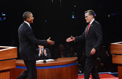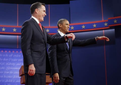Cuộc tranh luận đầu tiên trong cuộc đua vào ghế tổng thống Mỹ 2012 giữa Barack Obama và đối thủ đảng Cộng hòa Mitt Romney diễn ra tại trường đại học Denver từ 9h tối ngày 4/10 giờ địa phương.