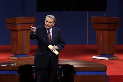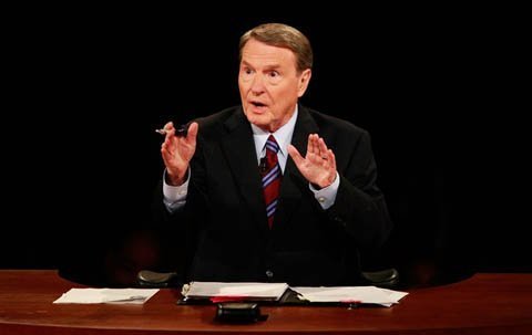 Người điều hành Jim Lehrer phát biểu trước cuộc tranh luận tổng thống đầu tiên tại Đại học Denver, Colorado hôm 3/10. (Ảnh: AP)