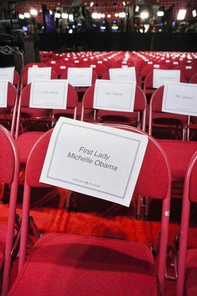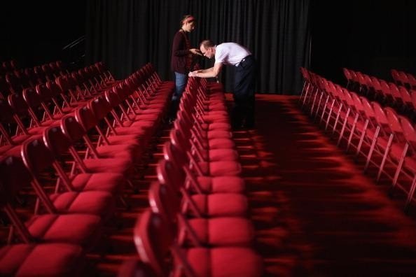 Các nhân viên dán tên của khán giả lên ghế (Getty Images)