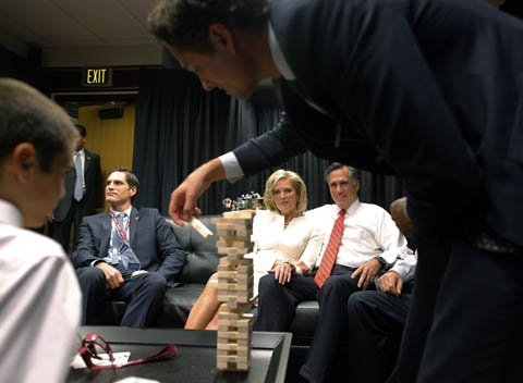 Ứng viên Đảng Cộng hòa Mitt Romney thư giãn trước khi bước vào cuộc "khẩu chiến" với Obama. (Ảnh: WashingtonPost)
