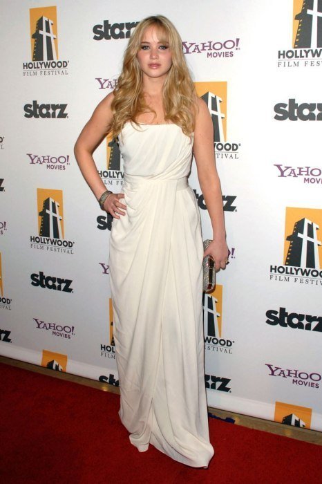 4. Tại buổi ra mắt phim Winter's Bone (2010), Jen nhìn béo hơn với kiểu váy rộng này.