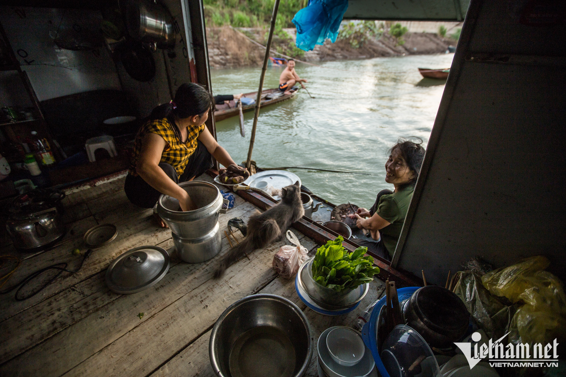Lúc này, lối lên bờ bị chia cắt, mọi sinh hoạt của các hộ đều diễn ra trong không gian chật hẹp của những chiếc thuyền được thiết kế thành nhà ở.