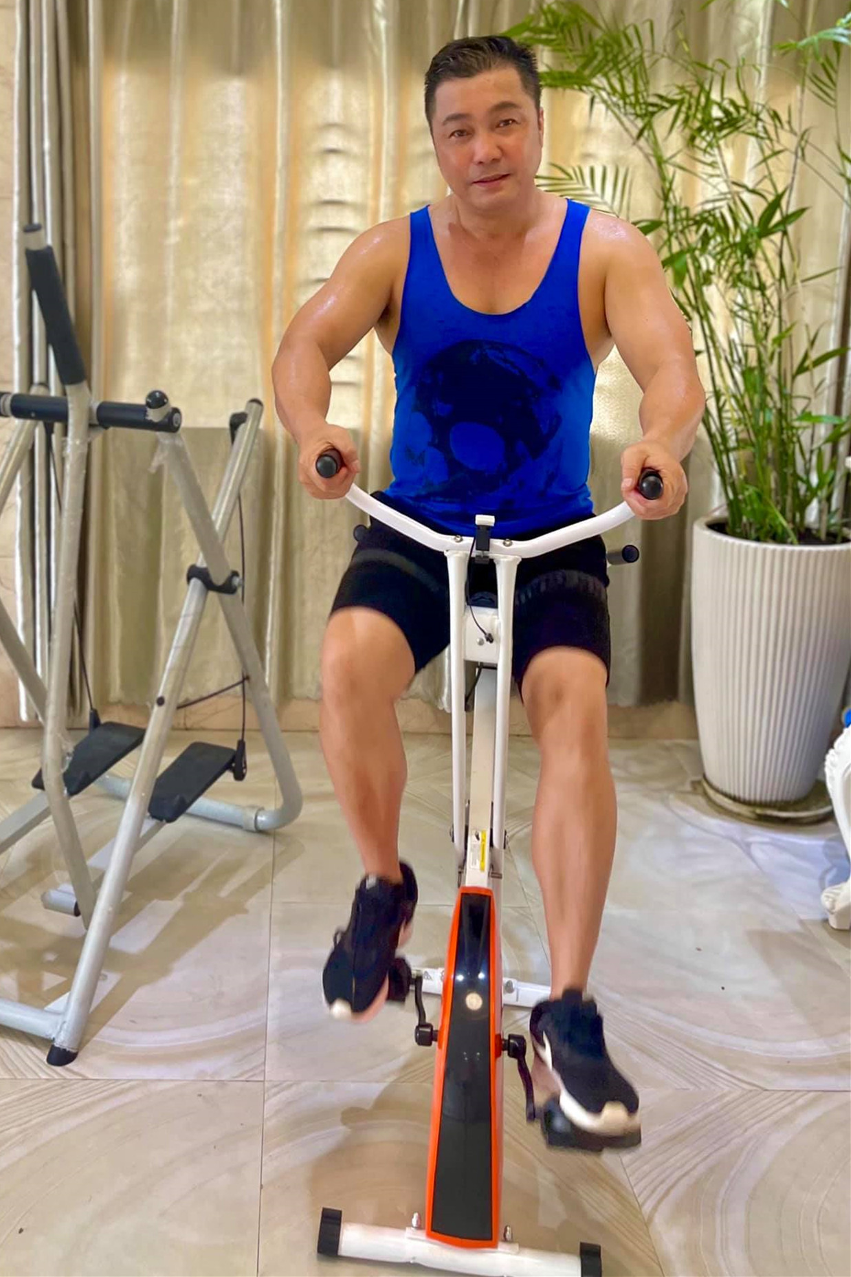 Bí quyết của Lý Hùng là tập thể dục kết hợp xem phim - đam mê lớn nhất đời anh. Nếu vừa chạy bộ vừa xem phim, diễn viên có thể chạy liên tục 1 tiếng trên máy.