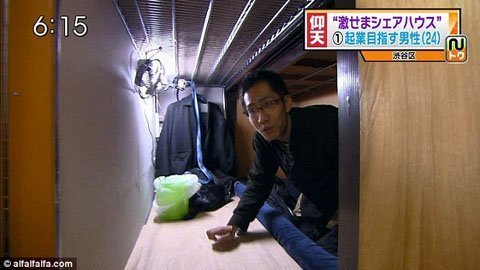 Trong tiếng Nhật những căn hộ chia sẻ như vậy được gọi là Geki-sema. Chúng thậm chí không có cửa sổ và phòng chỉ đủ cho một người và vài vật dụng cá nhân. Những căn hộ này chỉ đủ cho một người chui vào và họ chỉ có thể ngồi chứ không thể đứng dậy được, còn khi nằm muốn xoay nguồi thì phải cuộn tròn như một con mèo.