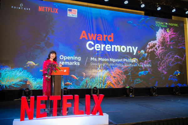 Chia sẻ về cuộc thi, bà Moon Nguyệt Phillips, Giám đốc Chính sách công khu vực Đông Nam Á của Netflix chia sẻ: “Tôi thực sự ấn tượng khi theo suốt hành trình của 700 thí sinh tài năng đến từ khắp Việt Nam. Hôm nay là ngày vinh danh những người chiến thắng trong cuộc thi này, và cũng chính là chúc mừng thế hệ trẻ đang mang đến thay đổi vì một Việt Nam bền vững. Chúng tôi trân trọng sự hợp tác và đóng góp tuyệt vời của Đại sứ quán Hoa Kỳ tại Hà Nội và NPX Point Avenue trong cuộc thi này. Đồng thời, Netflix với vai trò là tập đoàn dẫn đầu trong ngành giải trí mong muốn có thêm nhiều cơ hội đóng góp vào các giải pháp bền vững tới cộng đồng.”