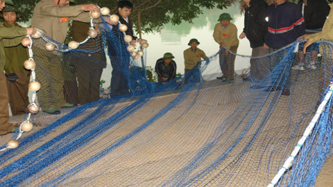 | Nhiều người dân hỗ trợ việc kéo lưới |