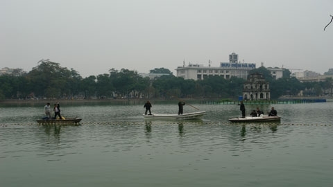 mặt để sẵn sàng phối hợp với lực lượng thả lưới để lai dẫn rùa Hồ Gươm. Có 6