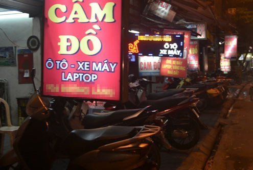 23h đêm ngày 30/6, tấm biển hiệu cầm đồ to đùng của quán S.T trên phố Láng- Hà Nội vẫn sáng choang ánh điện. Trong quán, thấy mấy gã đầu trọc xăm trổ đầy mình, mặt mũi bặm trợn đứng ngồi lố nhố. Thỉnh thoảng lại có khách đi xe chụi tọt vào “giao dịch” rồi để xe lại, bước ra.