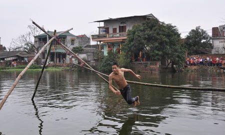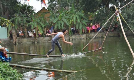 Trò chơi “leo cầu bùm” chính là phần được người dân thôn Phong Doanh mong đợi nhất mỗi dịp hội làng được tổ chức.