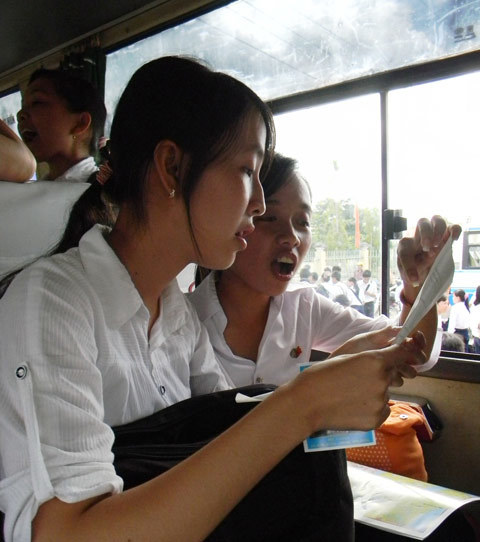 | Các thí sinh trao đổi sau kỳ thi tốt nghiệp. Ảnh: Minh Thái |