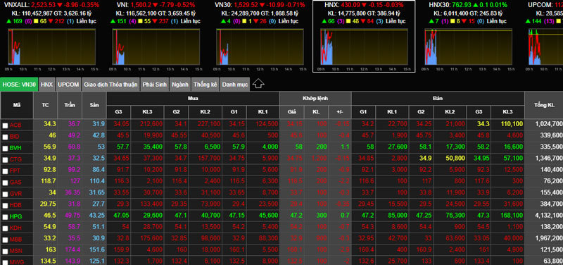Thị trường dần ổn định trở lại sau khoảng 30 phút giao dịch và VN-Index chỉ còn mất trên dưới 9 điểm. Một số mã cổ phiếu xanh trở lại như VietinBank (CTG), VietJet (VJC), Bảo Việt (BVH), Hòa Phát (HPG), Phú Nhuận (PNJ), TPBank (TPB)…