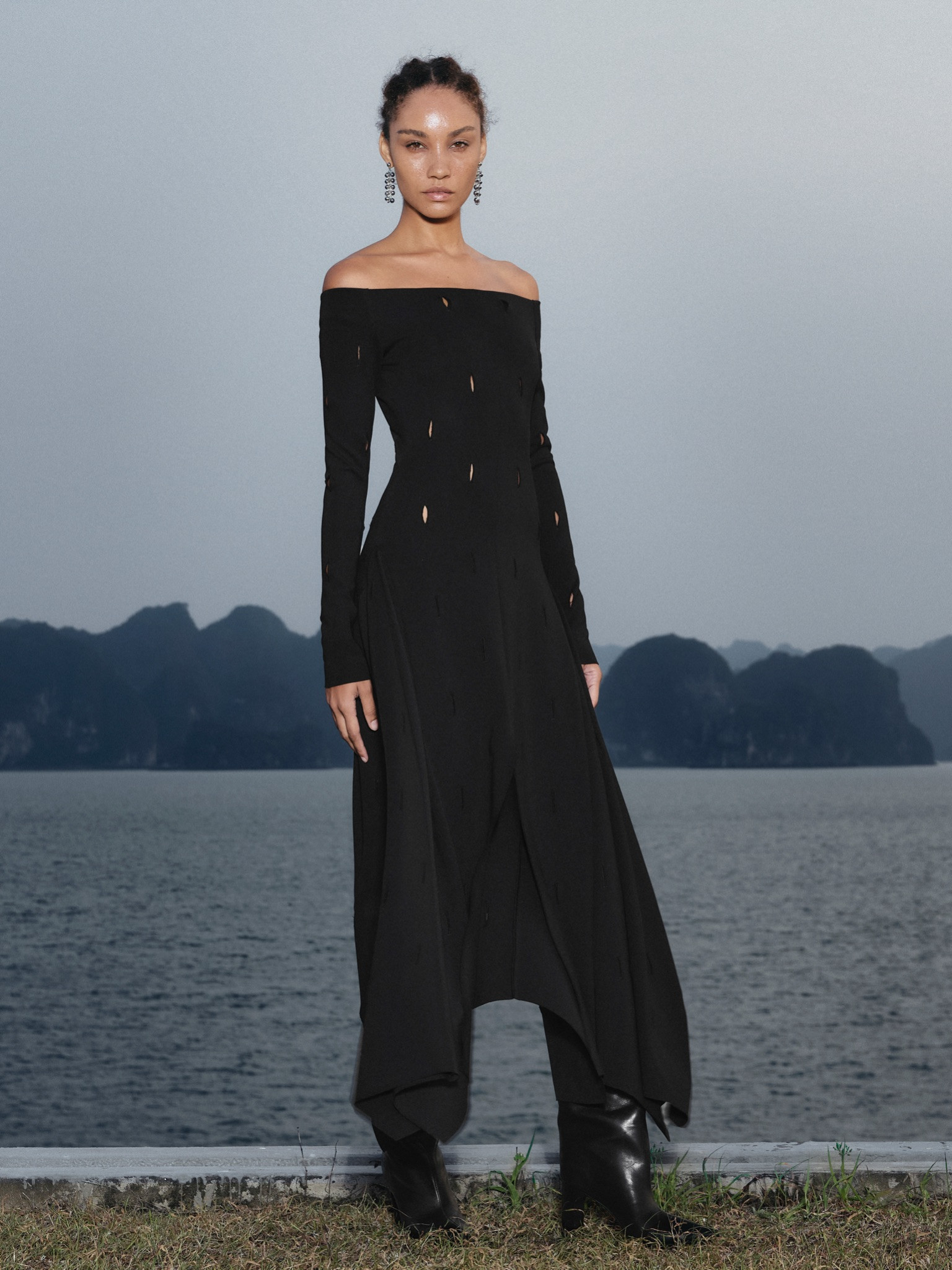 Tinh thần tối giản của nhà thiết kế được thể hiện trên các tông màu đơn sắc như: đen, trắng, nâu. Trí tuệ, sự độc lập và tự chủ lại hòa quyện, tương đồng với những cảm xúc tĩnh lặng, sâu lắng của người phụ nữ được NTK chuyển thể bằng ngôn ngữ thời trang.