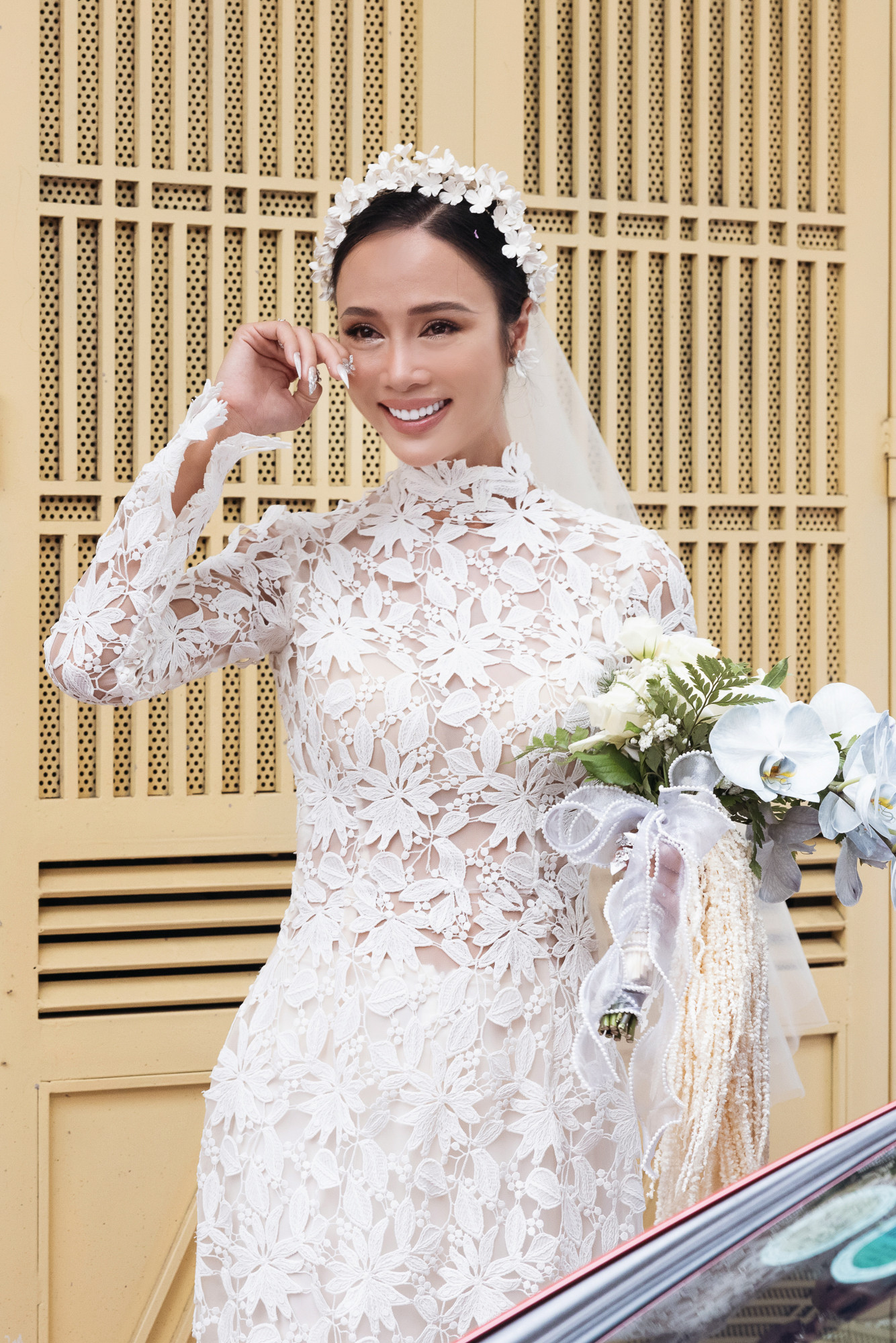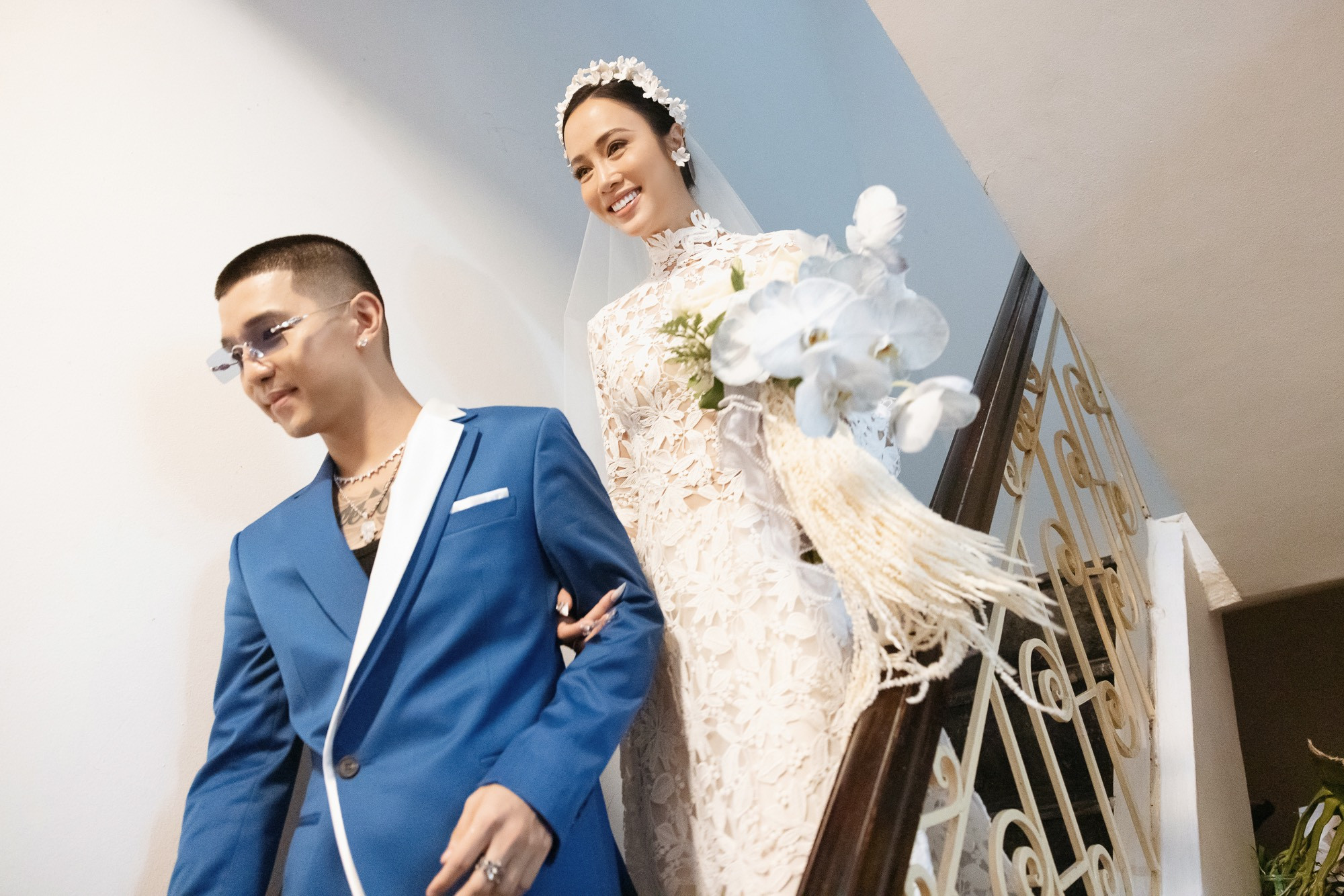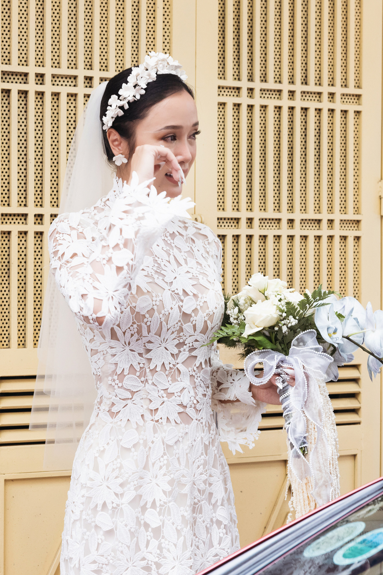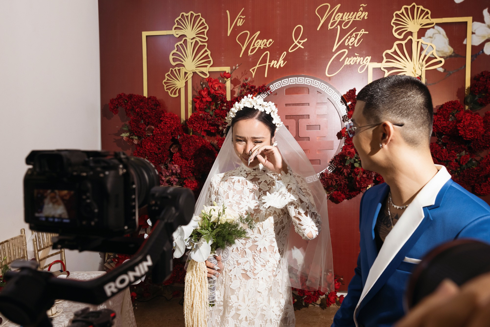 Trong giây phút thiêng liêng, cô dâu Vũ Ngọc Anh xúc động rơi nước mắt. Chú rể ân cần lau nước mắt, an ủi vợ.Cặp đôi tiếp tục trao nhau những cử chỉ ngọt ngào trong ngày hạnh phúc.Vũ Ngọc Anh sinh năm 1990, từng thi Hoa hậu Thế giới người Việt 2007. Cô cũng được nhiều người biết đến khi tham gia phim 'Quyên' của đạo diễn Quang Bình vào năm 2015. Cường Seven bằng tuổi Vũ Ngọc Anh. Anh được yêu thích với vai trò ca sĩ, diễn viên.