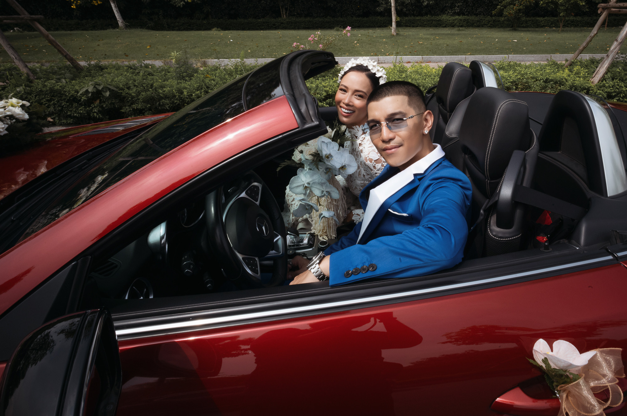 Chiều 28/7, Cường Seven lái xe mui trần rước cô dâu Vũ Ngọc Anh về dinh.
