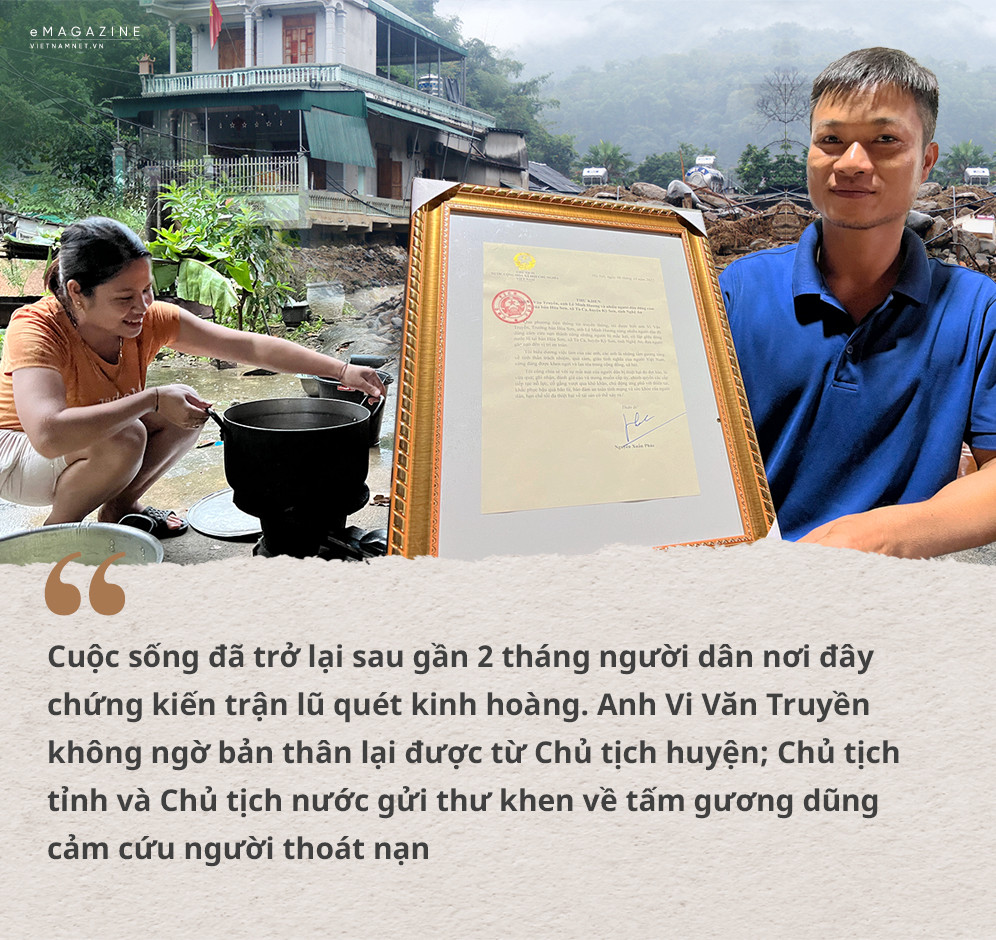 “Từ khi thành lập bản năm 1972 đến nay, chưa có trận lũ nào kinh hoàng đến thế. Nếu như lũ về vào buổi đêm hoặc không kịp thời phát hiện nhóm người mắc kẹt trong nhà, sẽ có rất nhiều trường hợp đáng tiếc trong trận lũ quét lịch sử này”, anh Truyền tâm sự.