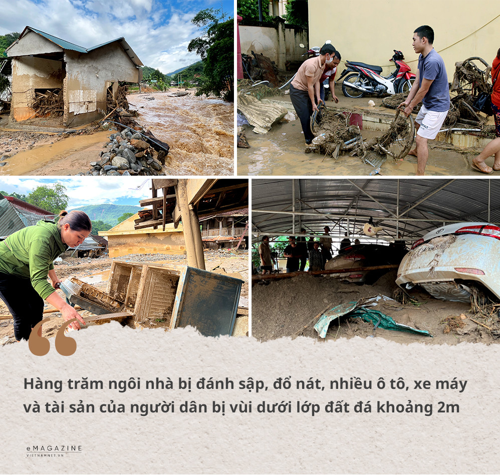 Bản làng bình yên nay còn đâu, trước mắt chỉ là những tảng đá cuội khổng lồ án ngữ đường đi, là hàng trăm nghìn mét khối bùn đất lấp kín nhà cửa, cây cối, là những người già, trẻ nhỏ chạy thoát thân trong đêm, đứng co ro giữa núi rừng.