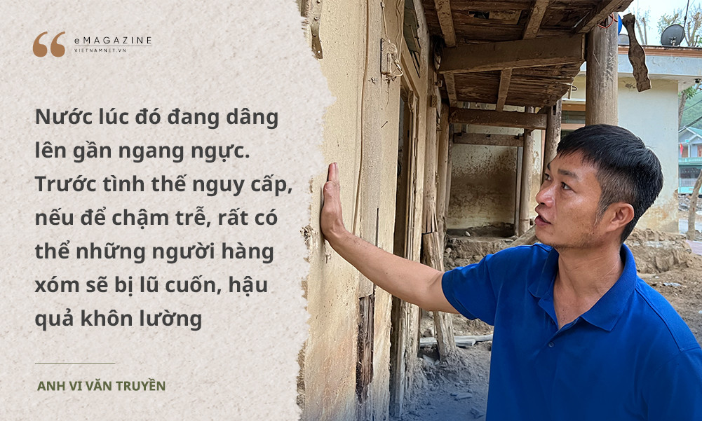 Nhà ngay cạnh con dốc nơi lũ đổ về, anh Vi Văn Truyền vẫn chưa hết rùng mình, sợ hãi. Những âm thanh, hình ảnh tàn phá bản làng đêm 1 và sáng 2/10 vẫn còn nguyên trong đầu người trưởng bản can đảm.