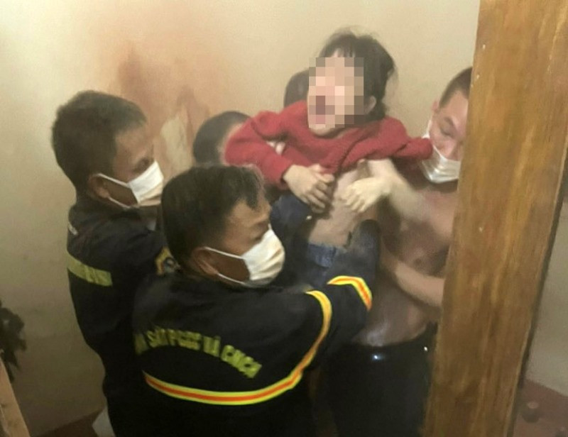Tại hiện trường, lực lượng chức năng xác định cháu bé bị kẹt giữa 2 khe nhà rộng khoảng 25cm, không có lối thoát hiểm và cháu bé không di chuyển được.