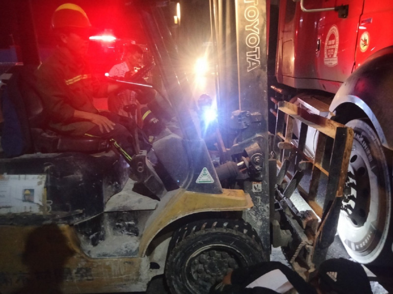 Nhận được thông tin, Đội Cảnh sát PCCC&CNCH khu vực 1 đã cử xe và lực lượng cứu hộ đến hiện trường. Nạn nhân là nam với nửa người và 2 chân cùng xe máy mắc kẹt tại phần đầu xe container mang BKS 15C 15790.