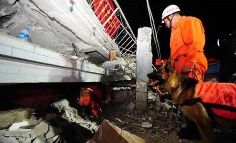 Cảnh sát, lính cứu hỏa và binh lính Trung Quốc đang làm việc cật lực để cứu những người còn kẹt trong đống đổ nát sau trận động đất ở tây nam nước này hôm qua (10/3).