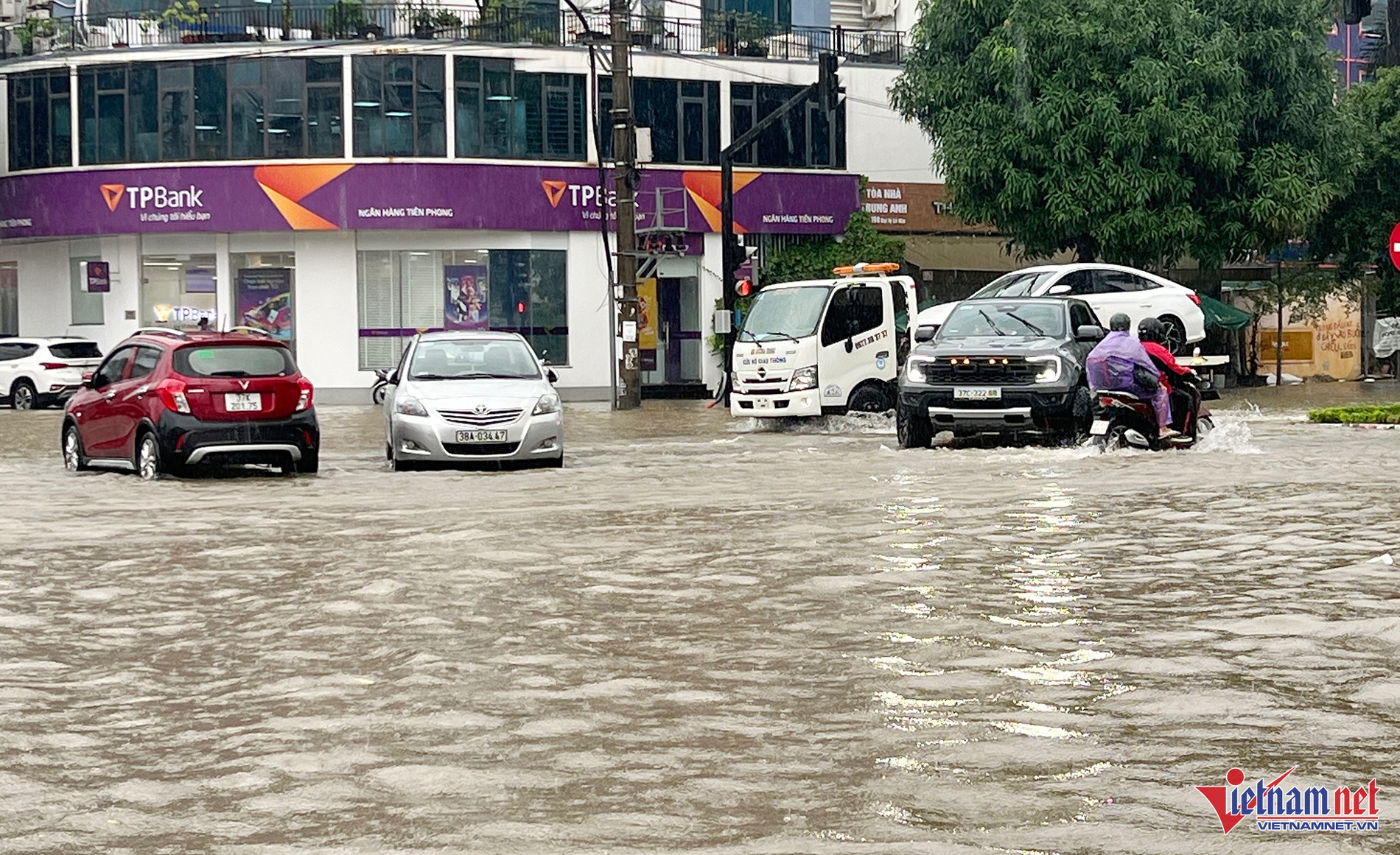 Ô tô, xe máy di chuyển rất chậm trên các trục đường bị ngập như: Đại lộ Lê-nin, đường 3/2, đường Phan Bội Châu, đường Quang Trung, đường Phạm Đình Toái, Đại lộ 72m, đường Phong Đình Cảng, Trương Văn Lĩnh, Lý Trọng...