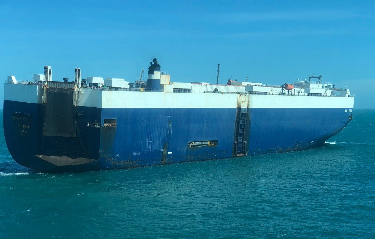 Tàu AH SHIN quốc tịch Panama, dài 199,9m, rộng 32m, cao 23,5m có tải trọng 21.503 tấn, đang chuyên chở 4.530 ô tô. Trên tàu hiện có thuyền trưởng quốc tịch Panama và 21 thuyền viên đều mang quốc tịch Nga.