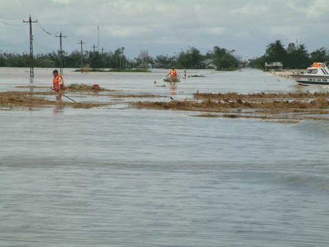 Đến 12 giờ trưa hôm nay, tại nhiều khu dân cư trên địa bàn TP. Tam Kỳ, Duy Xuyên, Thăng Bình và các khu dân cư vùng đông nằm dọc theo sông Thu Bồn đã bị ngập sâu từ 30 đến 1 m nước.