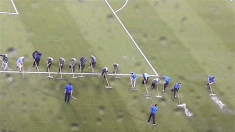Thậm chí, sau khi hết hiệp 1, trận đấu còn bị lùi lại hơn 1 giờ đồng hồ vì thời tiết xấu. Khi trở lại, trận thủy chiến thật sự đã khiến cầu thủ gặp rất nhiều khó khăn.