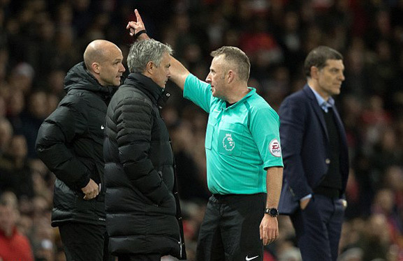 Cách đây ít tuần, HLV trưởng MU cũng phản ứng quyết liệt với trọng tài Clattenburg ở giờ nghỉ giải lao giữa giờ trận gặp Burnley. Sau đó, ông cũng phải lên khán đài tiếp tục theo dõi trận cầu.
