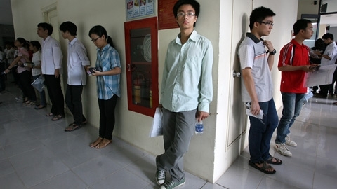 Chuẩn bị vào phòng thi. (Ảnh Lê Anh Dũng)