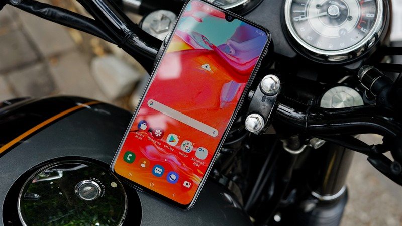 Galaxy A70 gắn bó với chip Snapdragon 675, RAM 6GB/bộ nhớ 128GB cùng viên pin 4.500mAh có khả năng sạc nhanh 22,5W và chạy Android 9.0 Pie.