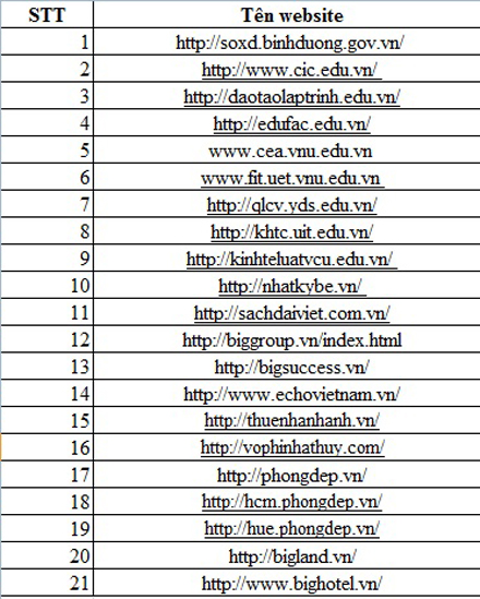 Theo danh sách mà fanpage Anonymous Malaysia đưa ra, có cả các website của Công ty VNPT Technology, Đại học Đại Nam, Trường Cao đẳng Công nghiệp và Xây dựng, Sở Xây dựng Bình Dương, Công ty Cổ phần phần mềm Kế toán Doanh nghiệp Việt Nam, Trung tâm ngoại ngữ Á-Mỹ, Đại học Hàng Hải…