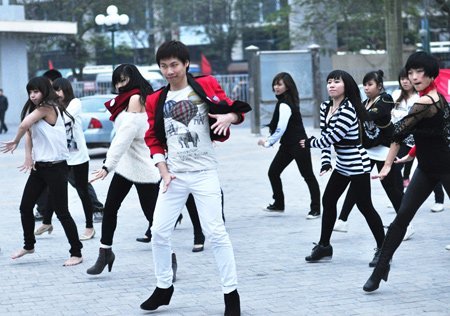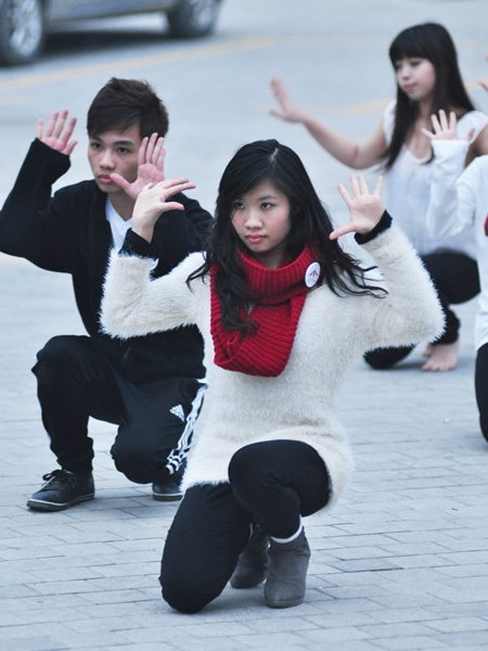 Màn nhảy được dàn dựng bởi chàng trai "đi giày cao gót" nổi tiếng - Đỗ Quang Minh (biệt danh là Minh xinh) và vận động viên khiêu vũ thể thao Hoàng Huệ Phương đã mang đến cho khán giả một phần biểu diễn "đã mắt" với những động tác vũ đạo chuyên nghiệp, nhanh mạnh, dứt khoát. Điều đặc biệt là phần lớn các sinh viên tham gia màn nhảy Flashmob ấn tượng này đều sử dụng giầy cao gót để biểu diễn.