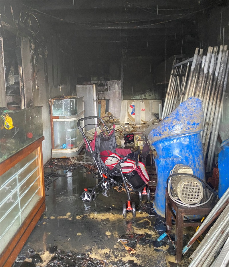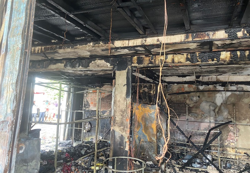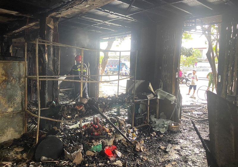 Tầng dưới của căn nhà được chia làm nhiều gian để kinh doanh, cho thuê mặt bằng bị lửa thiêu rụi nhiều thiết bị, tải sànCác vật dễ cháy bị thiêu rịu, chri còn các vật bằng kim loại trơ khungMột trong các gian nhà được dập lửa, phun nước, chống cháy lan kịp thời đã giảm thiểu thiệt hạiCảnh sát PCCC, CAQ. Thanh Khê triển khai dập lửa, khống chế đám cháy, ngăn chặn nguy cơ cháy lanBên trong căn nhà bị cháy giữa trưa