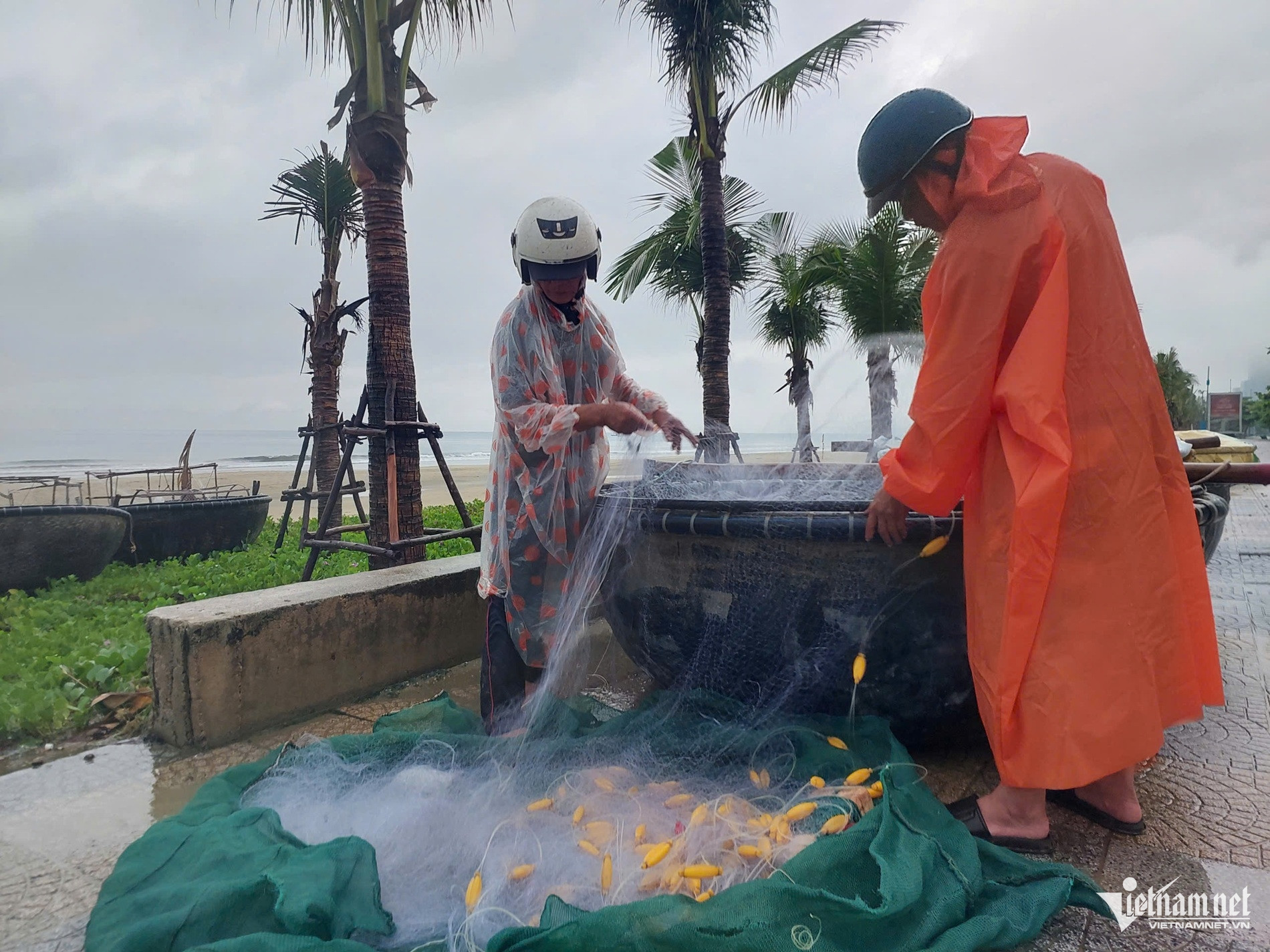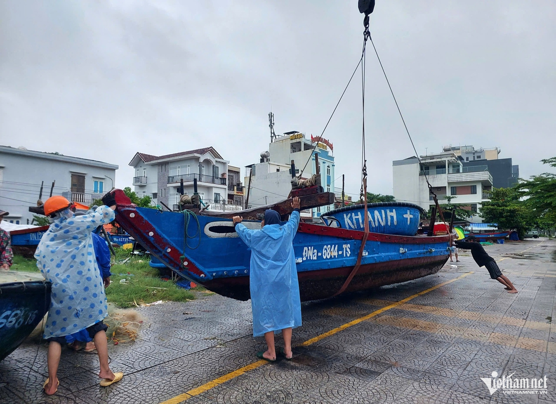 Dọc đường ven biển Hoàng Sa và khu vực chân bán đảo Sơn Trà, ngư dân cấp tập thuê xe cẩu tàu thuyền, đưa thuyền thúng lên vỉa hè để tránh sóng đánh, hư hại hoặc trôi dạt. Tại bãi biển trên tuyến đường Võ Nguyên Giáp, các hàng quán kinh doanh cũng gấp rút di dời tài sản nhằm hạn chế thiệt hại do sóng lớn.