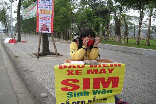 Dạo quanh các con đường như Nguyễn Tri Phương, Nguyễn Hữu Thọ, Tôn Đức Thắng... sẽ bắt gặp không ít cảnh người dân “bày binh bố trận” chiếm vỉa hè làm nơi bán bảo hiểm xe máy kiêm luôn SIM sinh viên, SIM 3G. Ghé vào một điểm bán SIM trên đường Nguyễn Tri Phương, chúng tôi nghe người bán “hót” rất bùi tai. “Ở đây bán SIM MobiFone, VinaPhone, SIM 3G, SIM thường, SIM sinh viên có tất!? SIM sinh viên 30K (30 ngàn đồng - PV) tài khoản 0 đồng nhưng mỗi tháng được cộng 35MB truy cập mạng, SIM thường giá 50K, có tài khoản gốc 30K, được khuyến mãi 100% giá trị 3 thẻ nạp đầu tiên…Anh muốn mua loại nào?”. Khi chúng tôi tần ngần hỏi: “Các loại SIM này có cần đăng ký thông tin cá nhân không?”. Người bán hàng hồn nhiên trả lời: “SIM sinh viên thì không cần đăng ký thông tin vì người ta đăng ký sẵn rồi, cứ việc mua là dùng, lại được hưởng ưu đãi chế độ của sinh viên trong vòng 4 năm, còn SIM thường muốn thì đăng ký, không muốn thì thôi không chẳng sao cả!”.