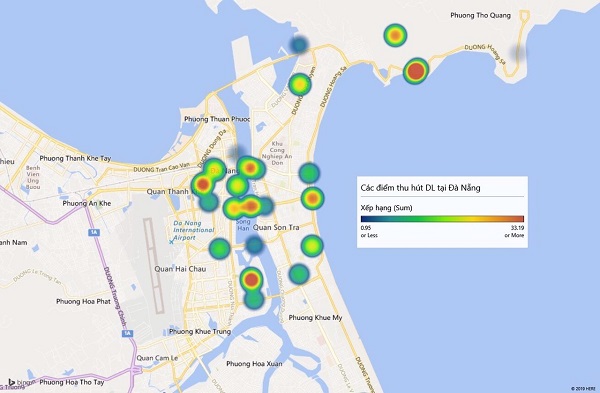 Bản đồ phân bổ các điểm thu hút chuyến đi khu vực trung tâm Đà Nẵng