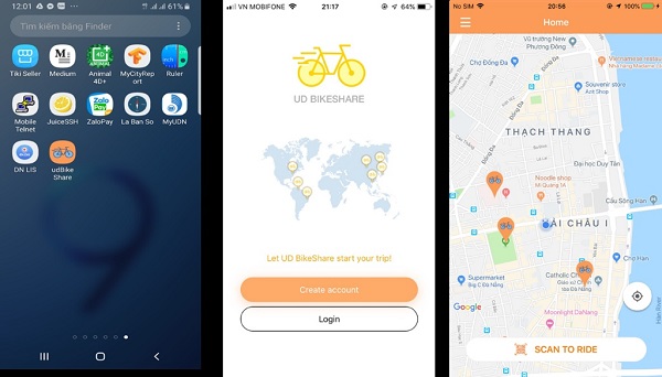 Ứng dụng để mở khóa, thuê xe đạp tại Đà Nẵng