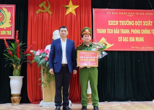 Theo thông tin từ UBND thành phố Đà Nẵng, chiều ngày 28/12/2018, Phó Chủ tịch UBND thành phố Hồ Kỳ Minh đã đến thăm, khen thưởng đột xuất cho Công an quận Sơn Trà đã triệt phá đường dây đánh bạc lớn qua mạng do các đối tượng người nước ngoài tổ chức.