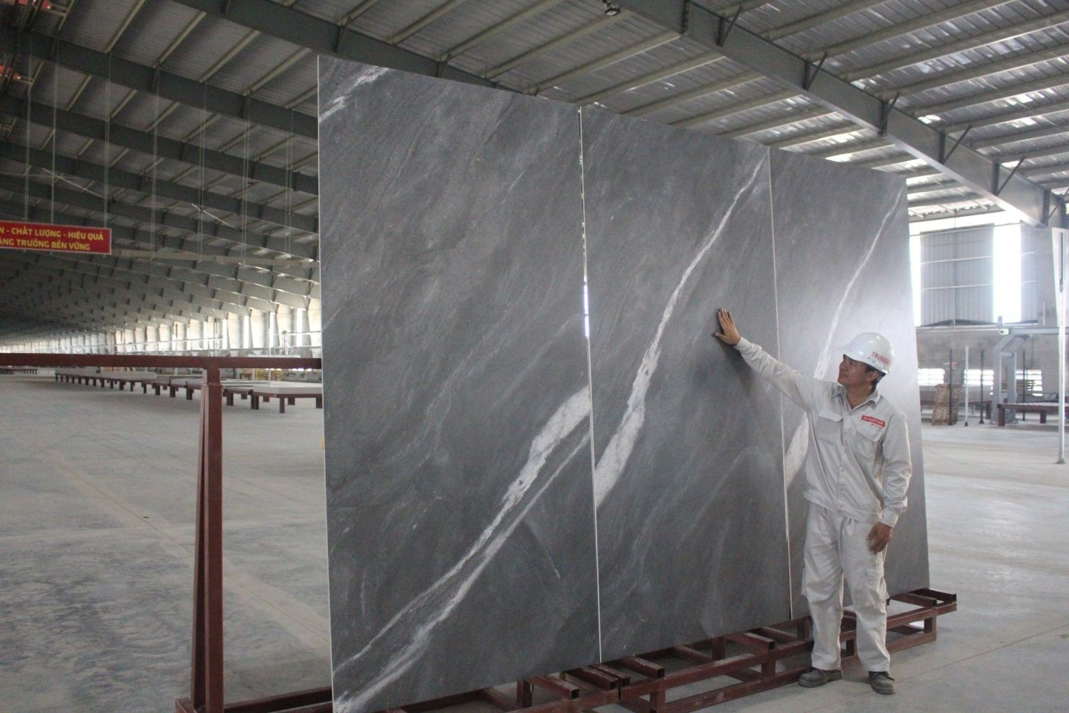 “Thách thức lớn nhất trong quá trình sản xuất đá SlabStone là “việt hóa” nguồn nguyên vật liệu phù hợp với tiêu chuẩn quốc tế” - ông Nguyễn Hồng Sơn - Chủ tịch Công ty Cổ phần Trung Đô chia sẻ về quá trình sản xuất đá nung kết.