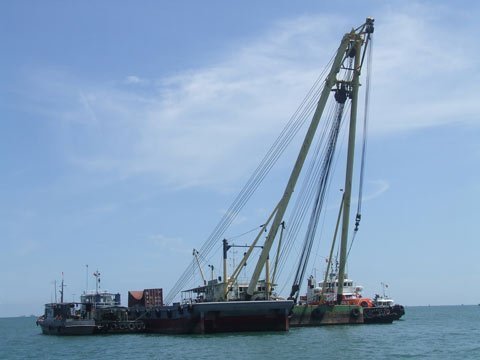 Sà lan trục vớt tải trọng 110 tấn làm việc