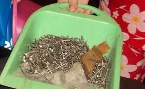 Người dân trong khu vực và nhiều lao công đã quét và thu dọn được khối lượng đinh đủ các loại lên đến vài kg, chủ yếu là đinh dài từ 3-5cm, có chiếc lên đến 7cm, những cái đinh này mới nguyên chưa có dấu hiệu hoen gỉ.