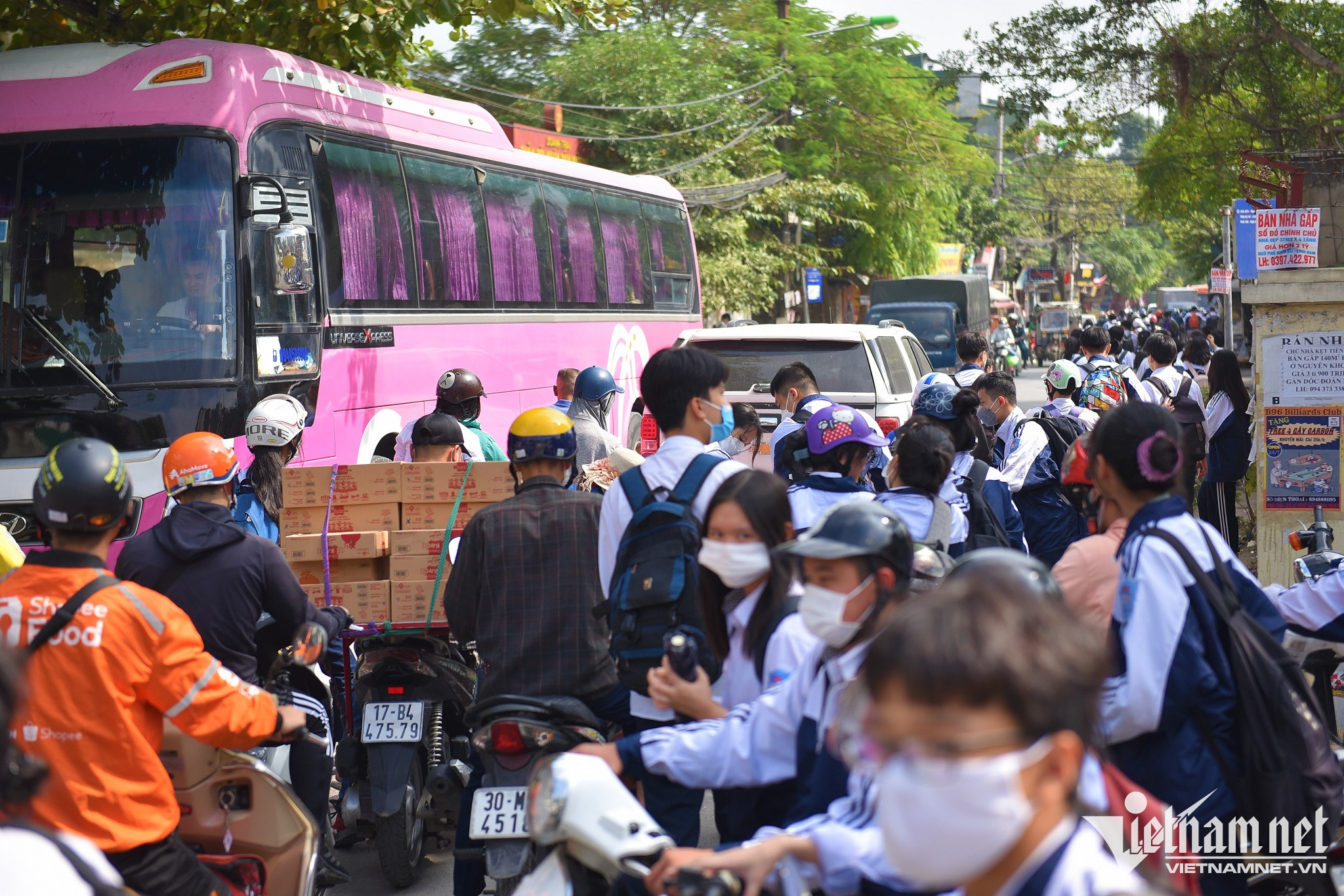 Nói về thực tế an toàn giao thông trước cổng trường, ông Nguyễn Minh Phi, Hiệu trưởng trường THPT Hoàng Văn Thụ cho biết, riêng trường Hoàng Văn Thụ có 45 lớp với 2026 học sinh. Giờ tan học vào 11h30 sáng và 17h30 chiều, đoạn đường qua cổng trường liên tục ùn tắc, tiềm ẩn nguy cơ tai nạn giao thông.
