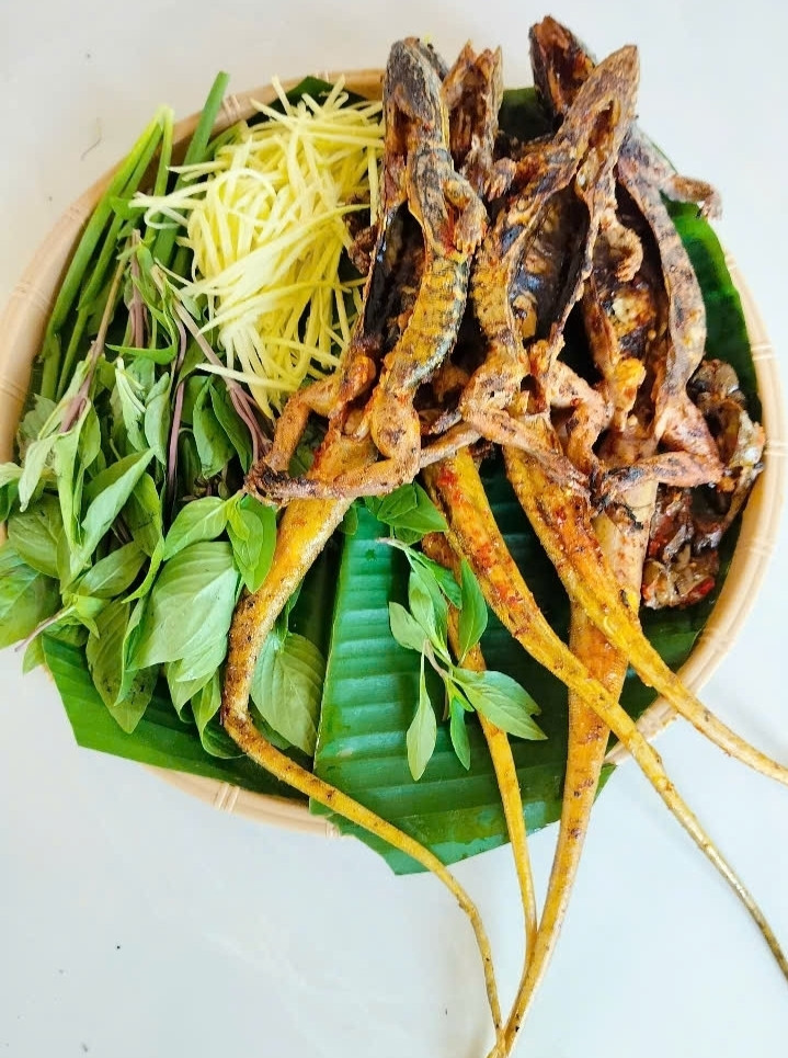 Ở Bình Thuận, con dông là nguyên liệu chế biến ra nhiều món ngon hấp dẫn như gỏi dông, chả dông, dông nướng muối ớt, dông bằm xúc bánh đa, cháo dông…