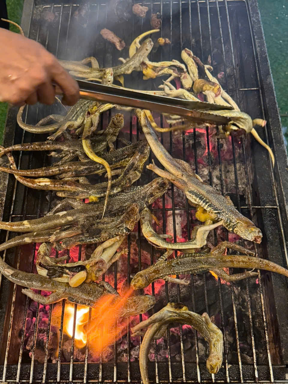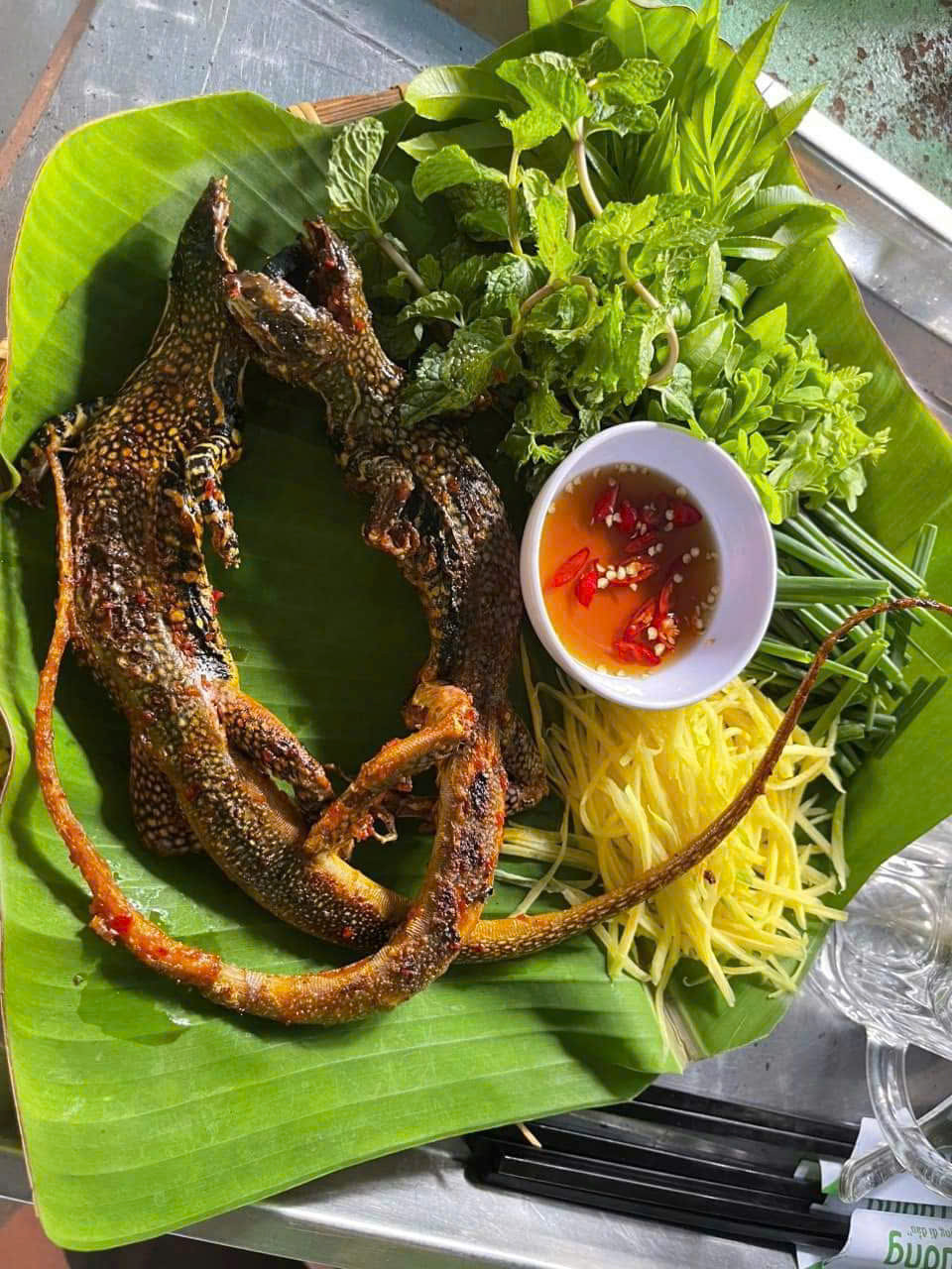 Với món dông nướng, người dân địa phương thường để nguyên con rồi tẩm ướp gia vị. Với các món như canh, lẩu, kho, xào…, thịt dông được chặt miếng vừa ăn rồi chế biến phù hợp theo công thức từng món.