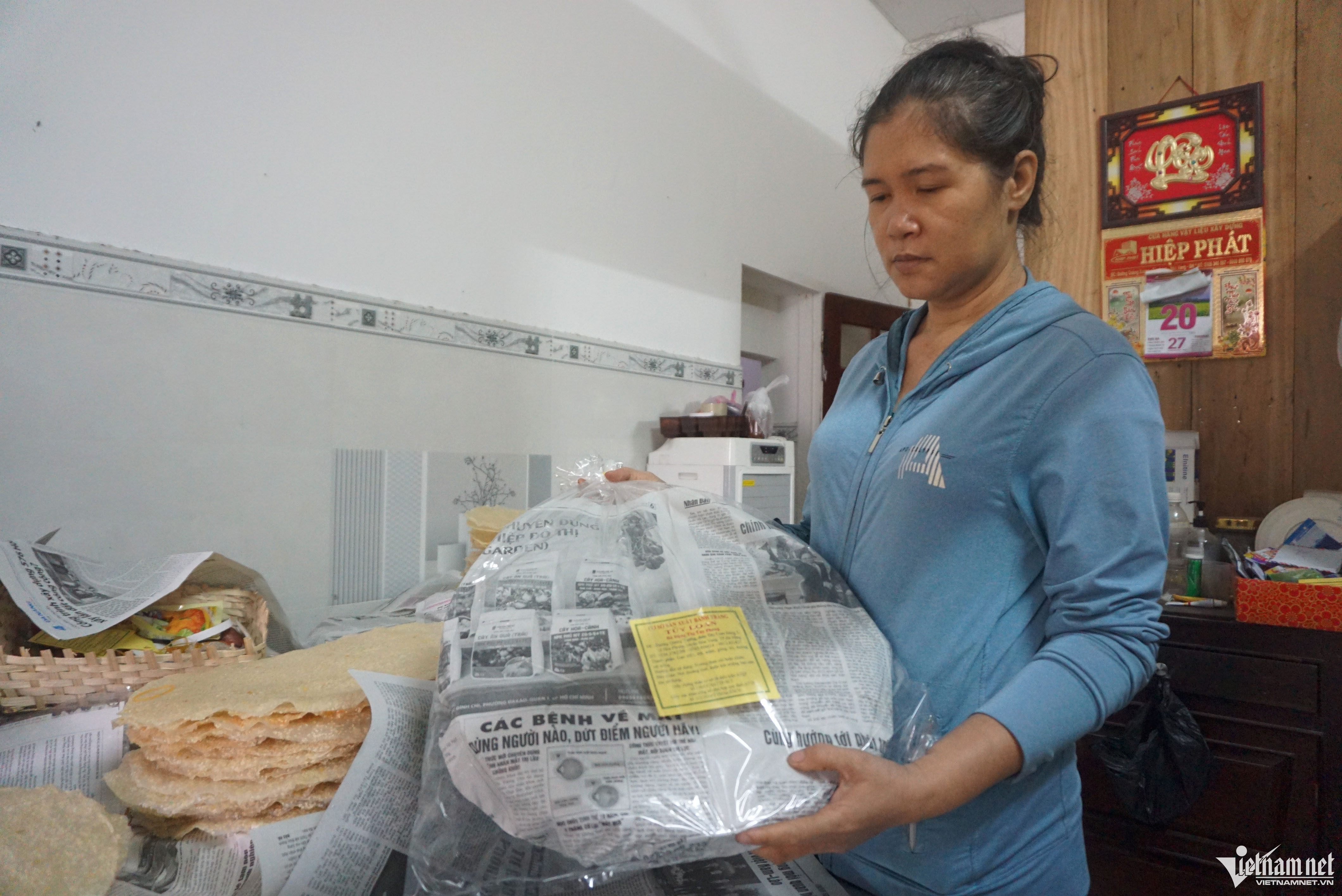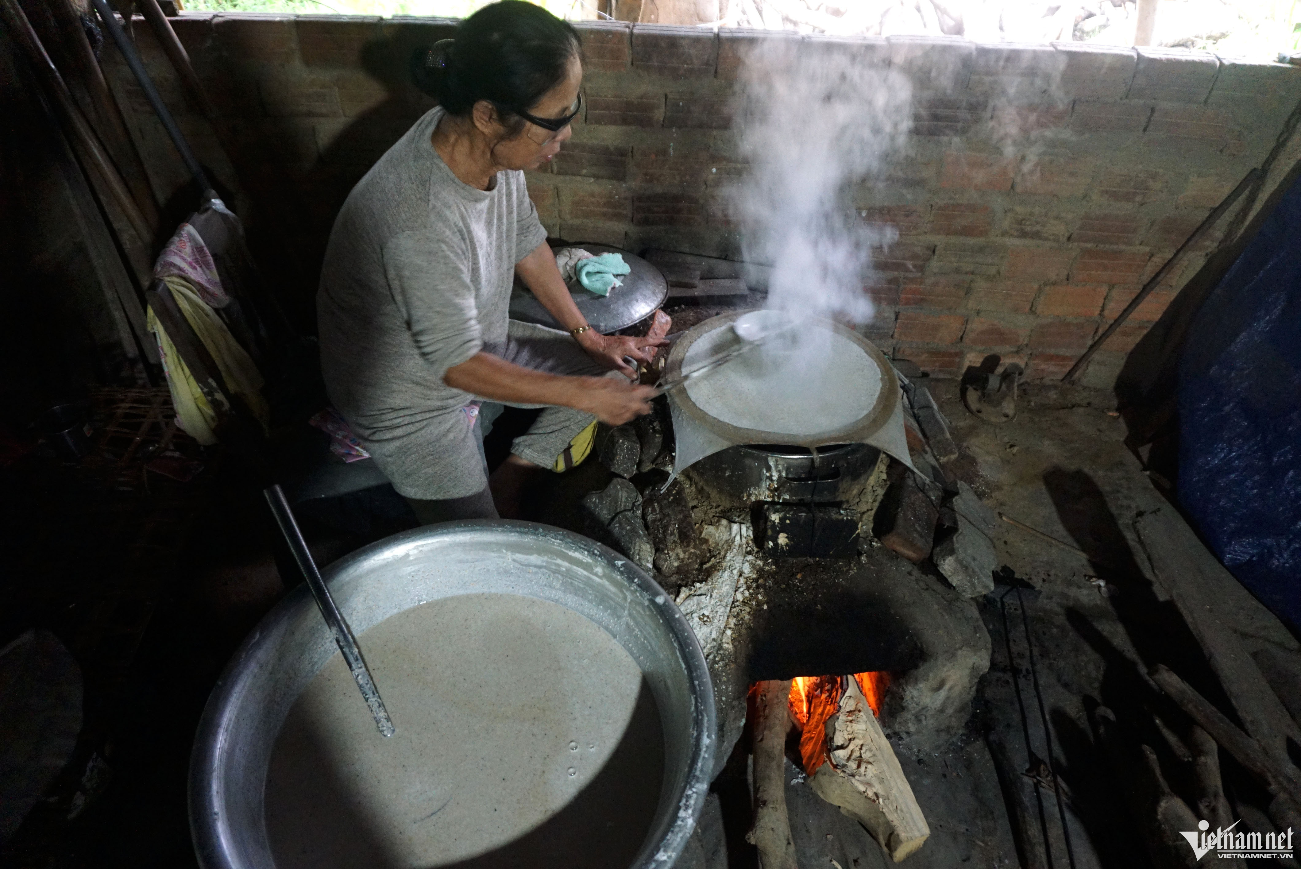 Từ mờ sáng, khắp làng bánh tráng ở Túy Loan (Đà Nẵng) luôn đỏ lửa làm bánh phục vụ nhu cầu của người dân trong và ngoài tỉnh dịp tết Tết Nguyên đán.