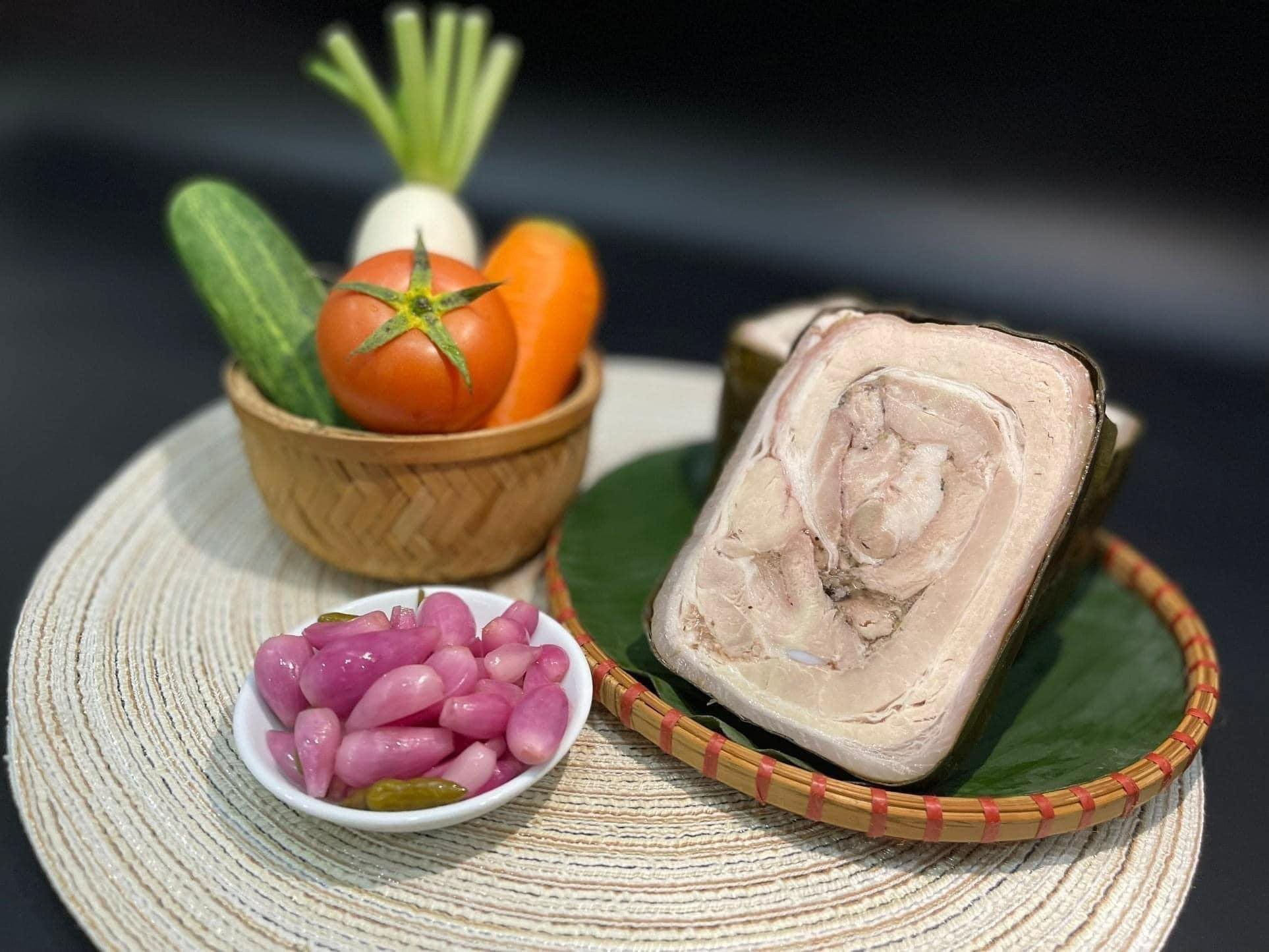 Thay vì xay nhuyễn thịt, người Thái Bình lại sử dụng miếng thịt lợn còn nguyên tảng lớn, giữ lại lớp bì rồi mới đem ướp gia vị và gói.